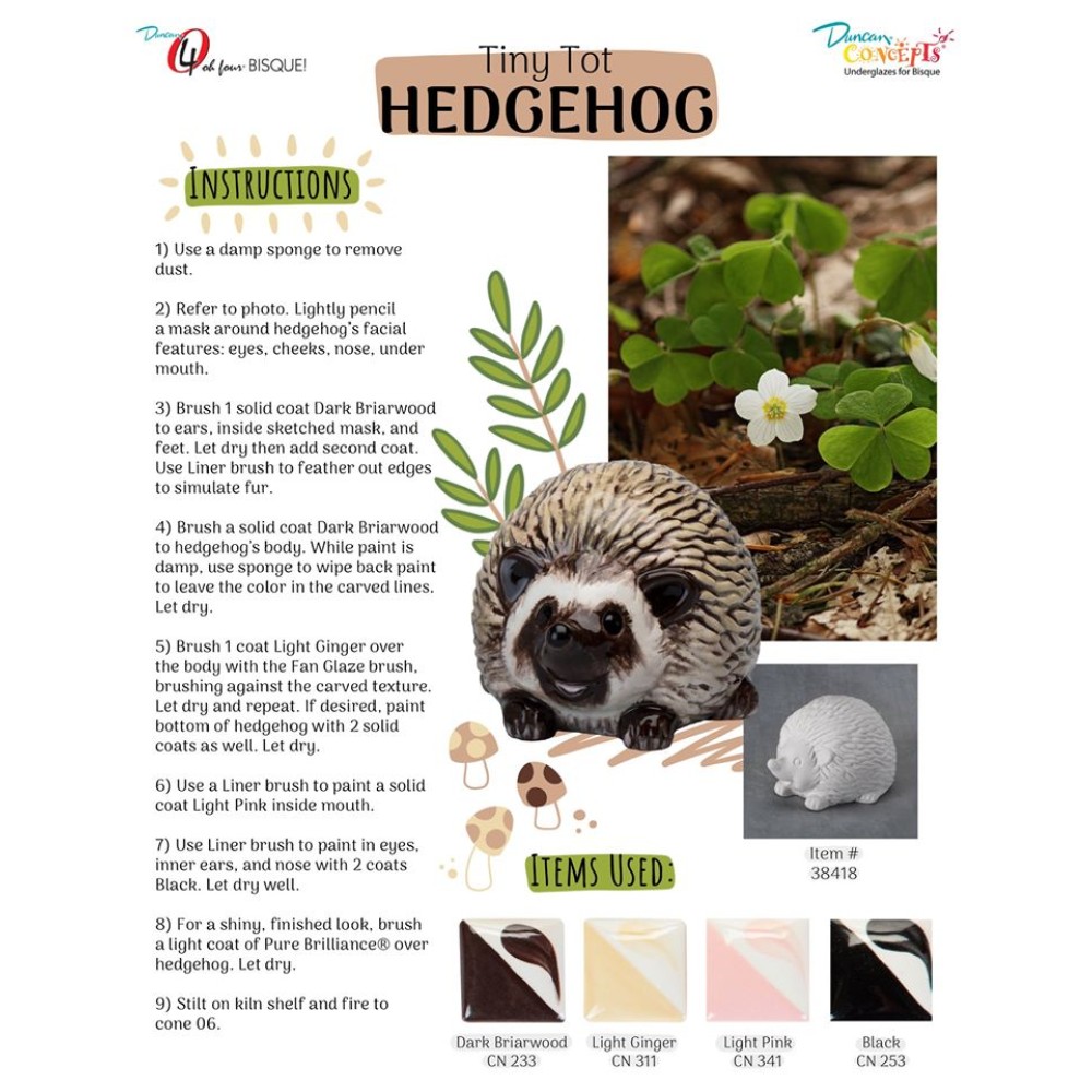 38418 Tiny Tot Hedgehog - in Ready to Paint, Cone 04 Ceramic Bisque