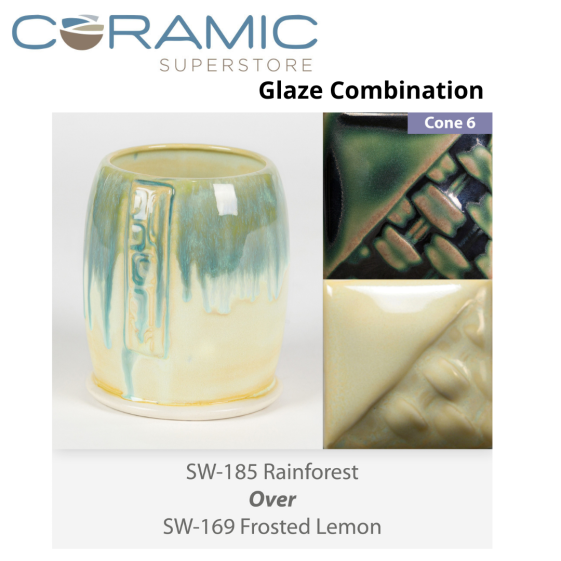 Rainforest SW185 over Frosted Lemon SW169 Stoneware Glaze Combination