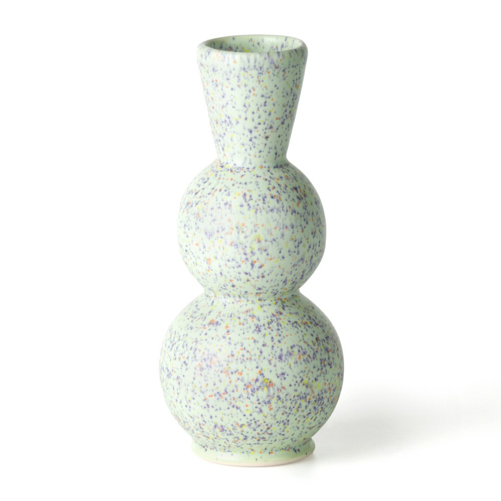 Cone 6 results: Mint Speck is a satin-matte, semi-opaque mint green that breaks over texture. Contains small purple, orange and yellow specks. This glaze is highly stable.