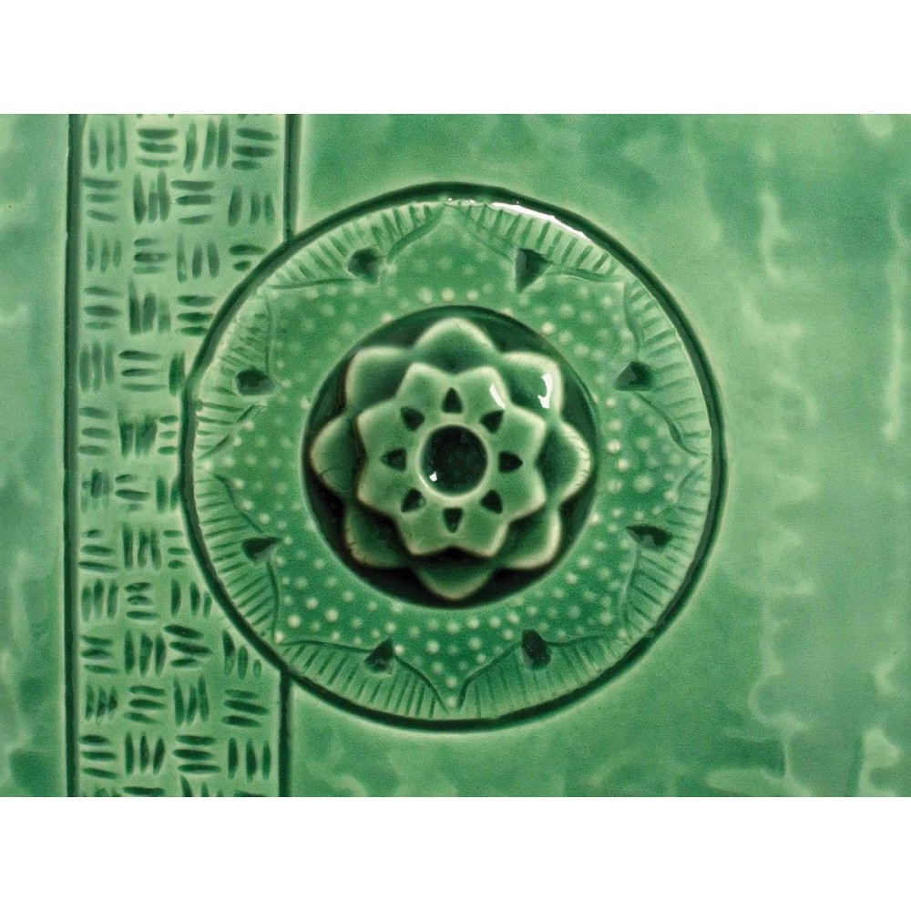 This 100% mixable celadon glaze is a cool, glossy emerald green that pools and accents textured ware like the ancient glaze it is created to imitate.