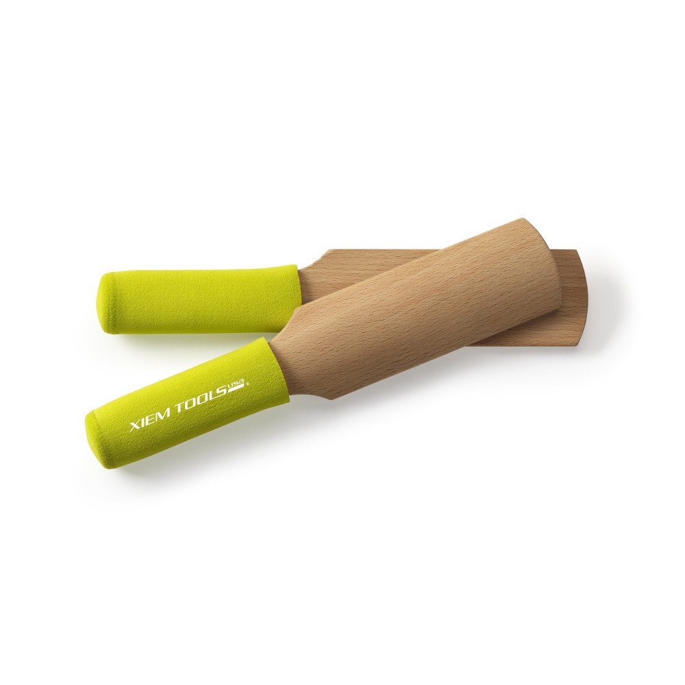 Xiem Clay Paddles are designed to solve simple solutions to shape, form, and compress clay like no other. They are handcrafted from solid beech wood for a lifetime of use. The flat side is excellent for shaping, forming, and flatting irregularities on the surface and to add strength, stability, and alter wheel forms and hand-built clay works. It is also an indispensable tool for the sculpture artist. The convex side is great for compressing clay and knocking out the air bubbles. The handles are covered with soft foam rubber grip for uttermost comfort and pleasure to use.