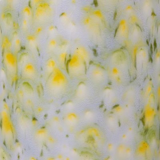 Cone 06: Lemon Lime is a transparent base glaze with yellow and smaller green crystals that melt/bloom.