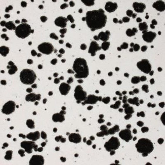 Cone 06: Ink Spots is an opaque white base glaze with black crystals.