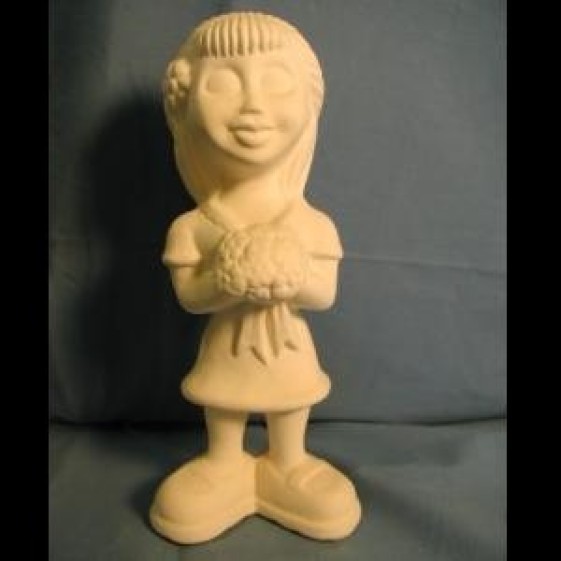 SCS0101B Diva with Flowers in ready to paint, Cone 04, Ceramic Bisque that is hand made in the U.S.A